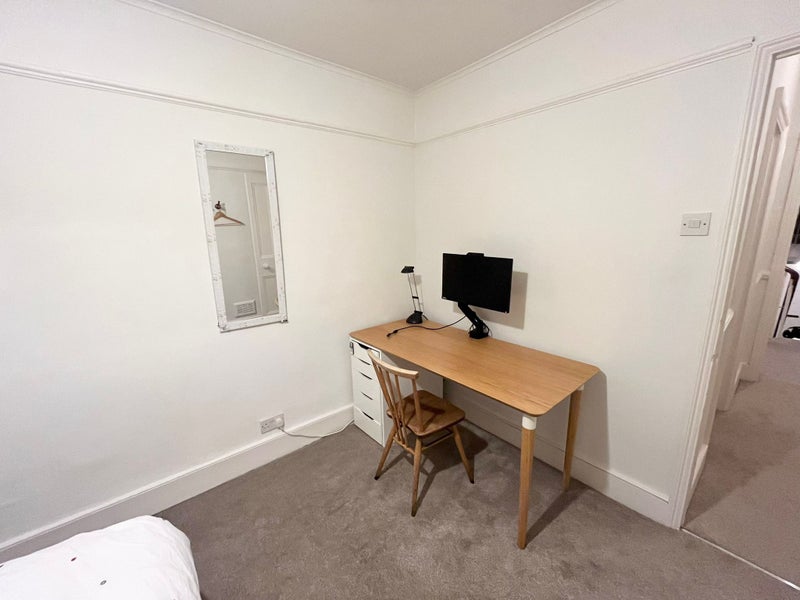 Your room is a double at the back of the house (very quiet), overlooking our garden, with desk and monitor. Linen is provided and we have a new Emma mattress. There is limited space for hanging clothes. Use of shared kitchen (with us), private living room (your own), and bathroom (occasionally shared). Possible to leave some personal items between stays.
