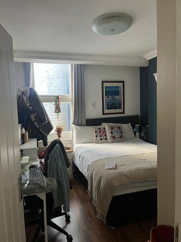 The kitchen and bathroom are spacious, and you’d be sharing with 2 girls, very sweet professional.