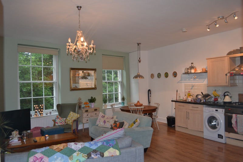 The communal area is a large open plan lounge/kitchen/dining room. (I've managed to cook and seat 17 for a roast dinner in here!). Fully furnished by the landlord except for kitchen crockery/utensils, which I have provided. We have a washing machine but no tumble dryer.