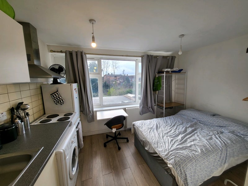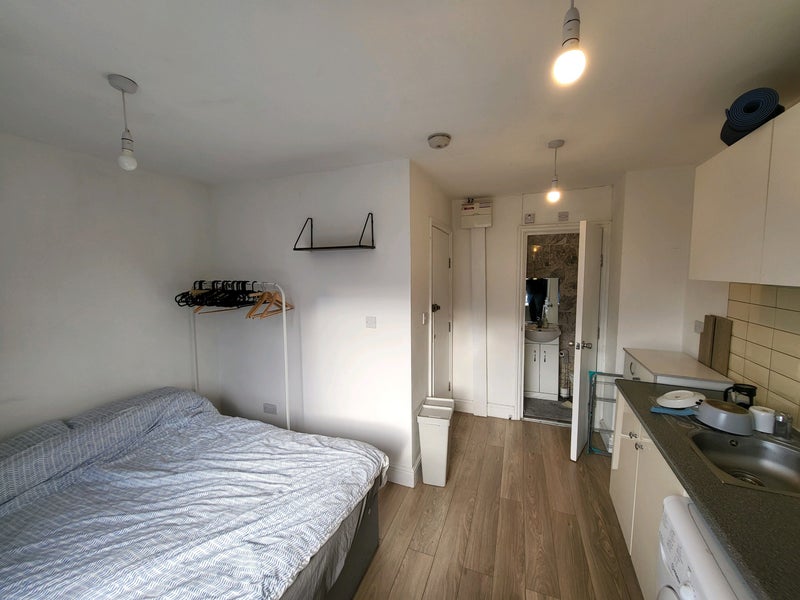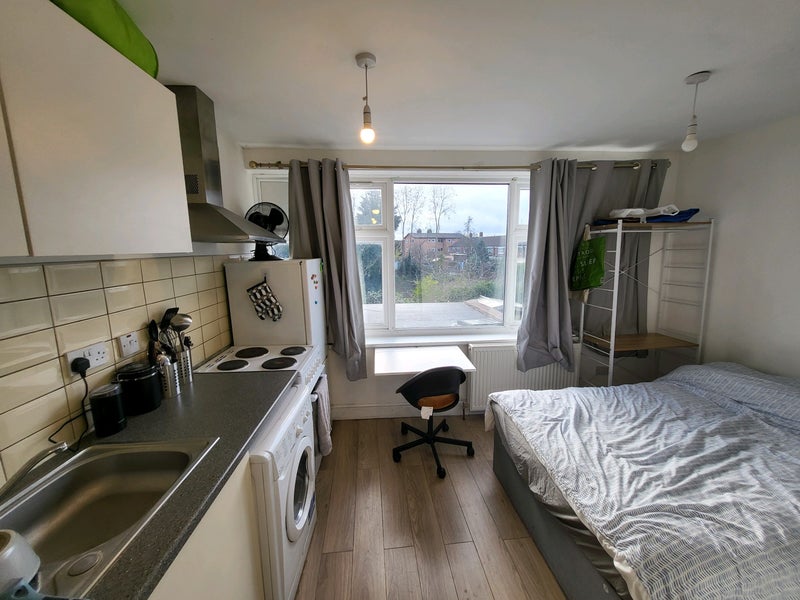 a newly refurbished studio flat with a modern kitchen situated in the heart of Walthamstow.