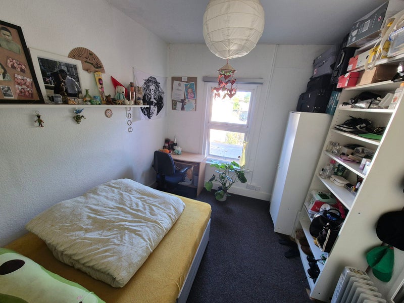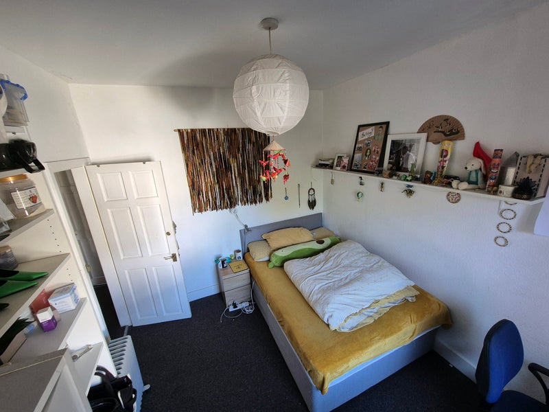 Furnished Big Double room but flexible (we can move or add furniture) in a first floor flat with a kitchen and a bathroom with shower. There's also a small outdoor patio on the ground floor that's being converted into a small garden space and bike storage. Possible storage in the attic too.