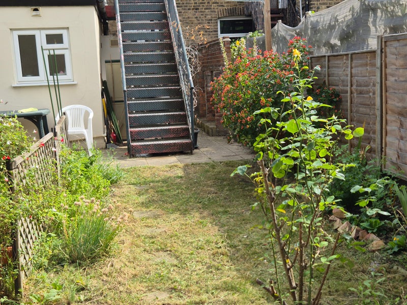The flat has its own back garden with patio and has its own seating area.