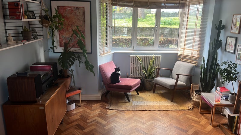 It’s a cosy flat surrounded by lots of green with easy access to public transport.
