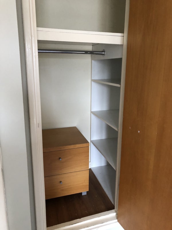 1 front facing sunny double room (double bed and 2 chests of drawers included) with built in storage/closet