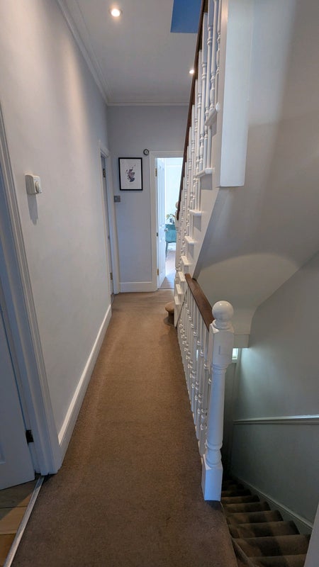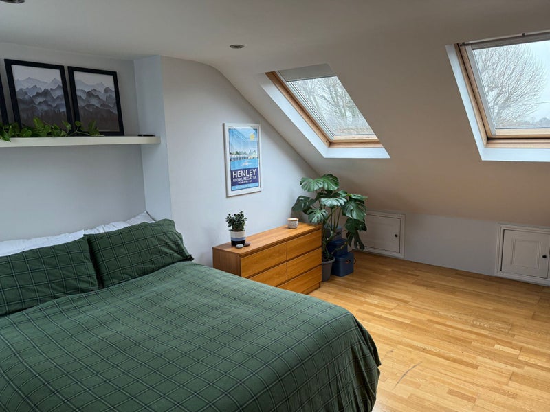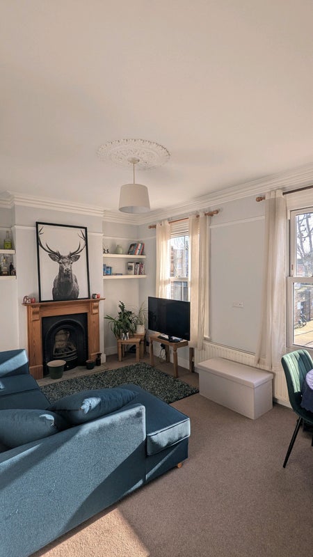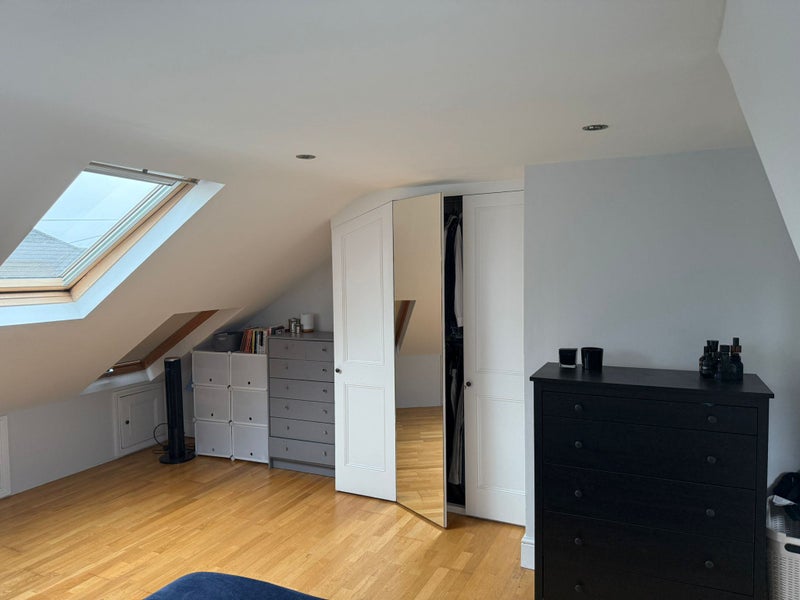The room is unfurnished but comes with a wardrobe. It's on the top floor and very spacious. Although it's not an en suite, it is opposite the bathroom (a second toilet is downstairs). Bills come to approx. £100. Some of the pictured furniture may be moving out with my flatmate (namely the TV, table/chairs and the ridiculous stag picture...) so there is room for any household goods to come with you.
