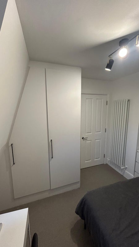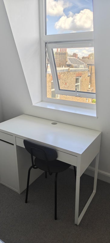 The room is furnished with smart modern double bed, wardrobe, bedside drawers, desk and chair. Part of a new loft conversion completed very recently. New bathroom on the same floor and access to the brand new roof terrace.