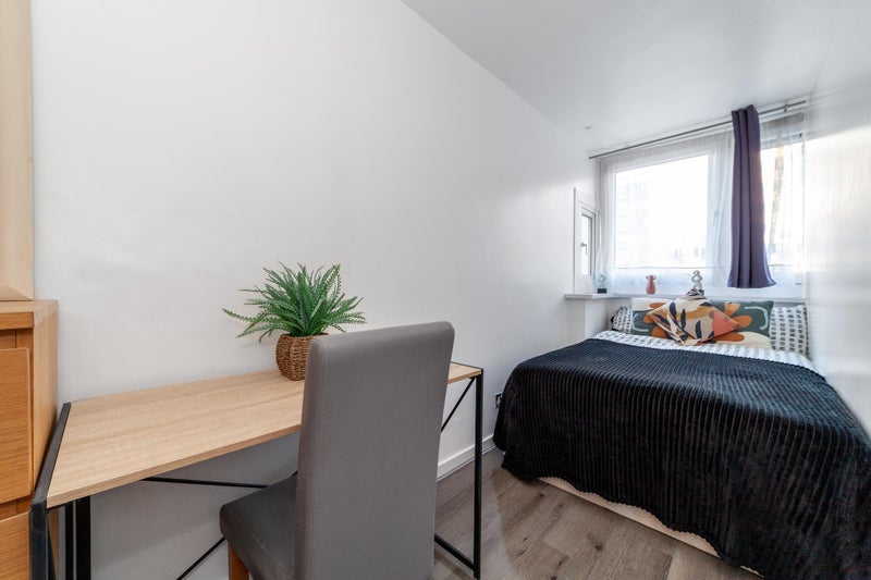 Budget room with modern touch in this conveniently located flat is available for single occupier! The flat is located next to Southside shopping center and King George's Park. Transportation - Many buses, peaceful and safe bike lanes, East Putney(District line) and Wandsworth town station(train) all in walking distance.