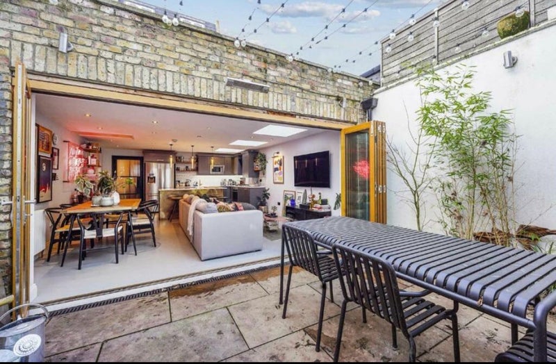 Although the room is smaller, it does have its own window and the main living space is big, beautiful and has great light. Bifold doors open out onto a terrace which gets the midday sun in summer.