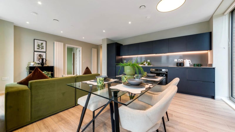 • The Flat: Open-plan living/kitchen with an 8-seater dining table (great for hosting) and a south-facing balcony with views over South London.