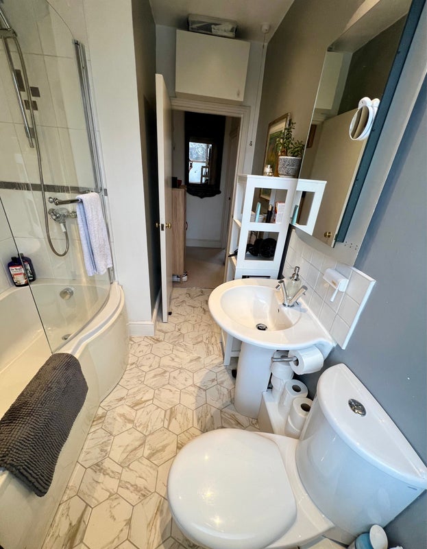 I’ve mentioned an en-suite in the listing as the bedroom has its own bathroom downstairs, but it’s based next door / outside of the room itself.