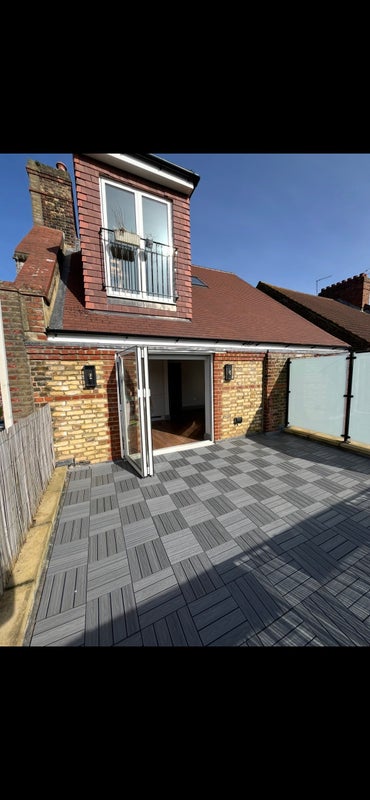 The room has plenty of space for a large double bed, desk, and any wardrobes/dressers/storage units. You also have your own tiled bathroom. The room itself is part-furnished but I have furnished the other rooms in the flat (also happy for you to add to the vibe). There is a shared open plan kitchen/living room with sliding doors opening onto a large roof terrace, which is amazing in the summer!