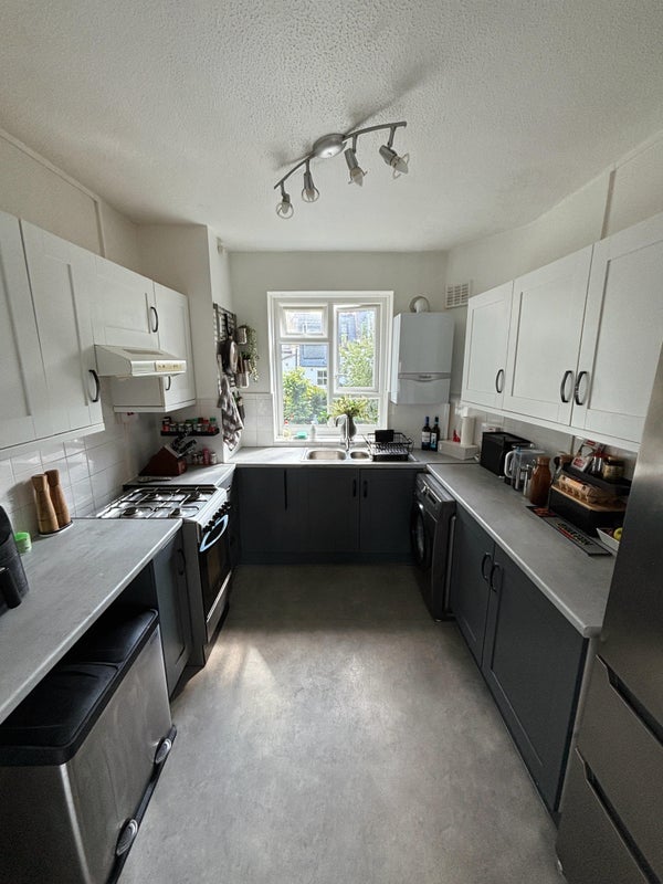 There’s a comfortable living room with a sofa and dining table, with a nice, elevated outlook and evening sun. We have a large TV with Sky. The flat has a separate toilet room from the bathroom, making sharing much easier. The kitchen is fully equipped, including a large fridge/freezer, gas hob/oven and an air fryer. We also have central London fibre broadband.