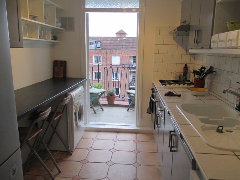 The flat is modern, bright and spacious, with wooden floors and large windows that flood the space with natural light. There’s also a lovely balcony off the kitchen overlooking the communal gardens, perfect for relaxing in the sun. ☀️