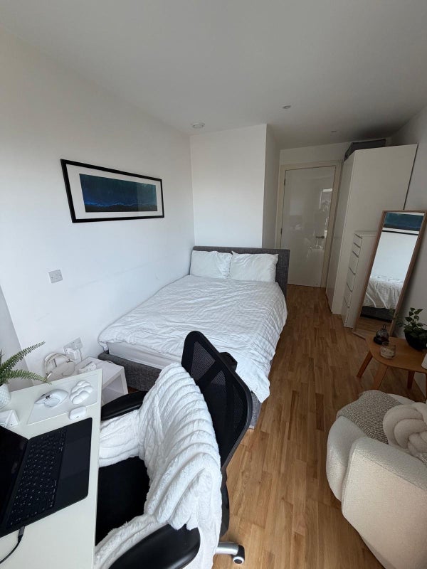 The room on offer is spacious and bright with a lot of storage and a double bed with an adjacent bathroom with bath/shower. The flat is a 5 minute walk to Wandsworth Town Station and 15 mins to Clapham Junction.