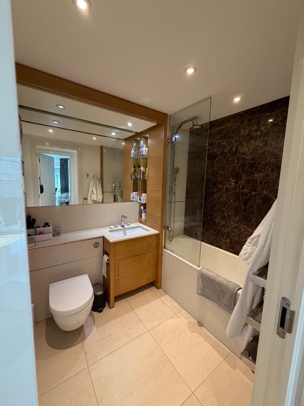 The flat features two bedrooms, two bathrooms, an open plan kitchen/living room with a balcony! The flat is in the Battersea Reach development which includes concierge, shared parking spot, gym and coffee shops/pub - with the Ship and the Alma just across the road, perfect for summer!