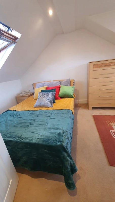 Spacious double bedroom available in a split-level flat, giving a more open and private feel than a typical room let.