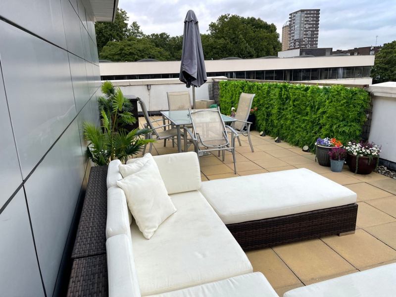 - Private wrap around roof garden has fantastic views towards Canary Wharf and City, garden furniture and sofa's great for sunbathing in privacy, outdoor speakers.