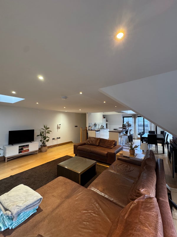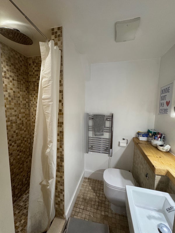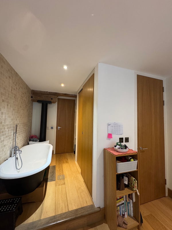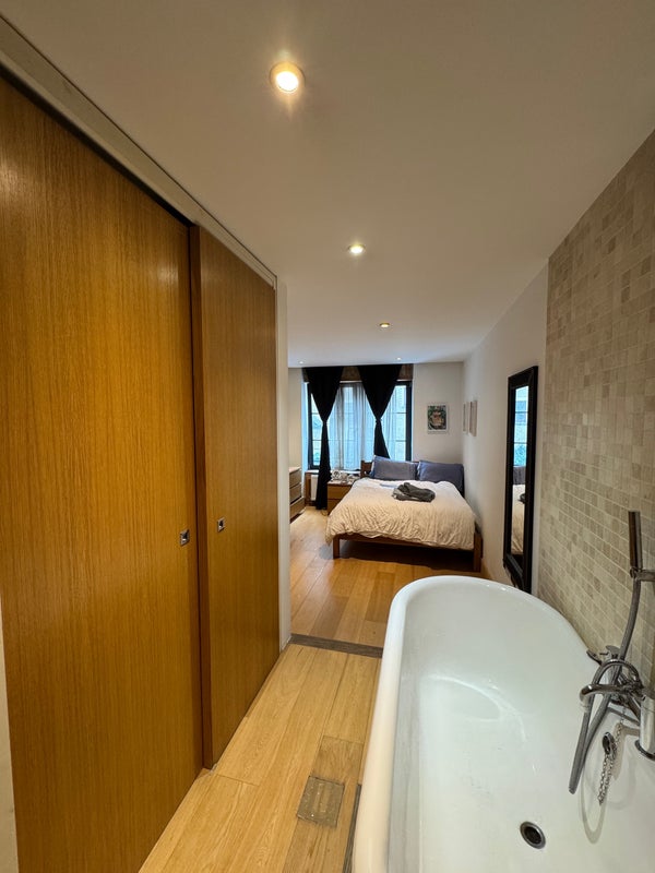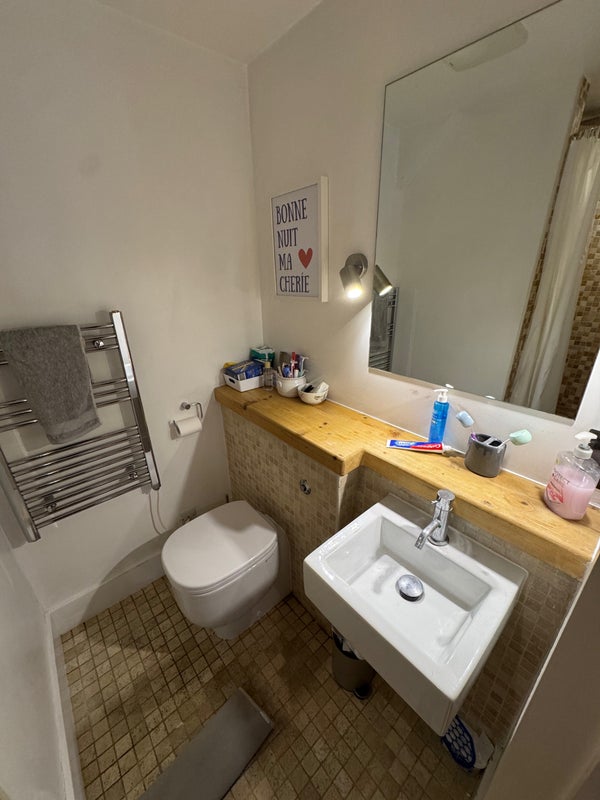 This is a gorgeous double room with en-suite in Wapping. The room is south facing with big windows, so the room is bright and airy. The flat is two floors, with a nice kitchen and living space upstairs. There’s plenty of storage and space for everyone.