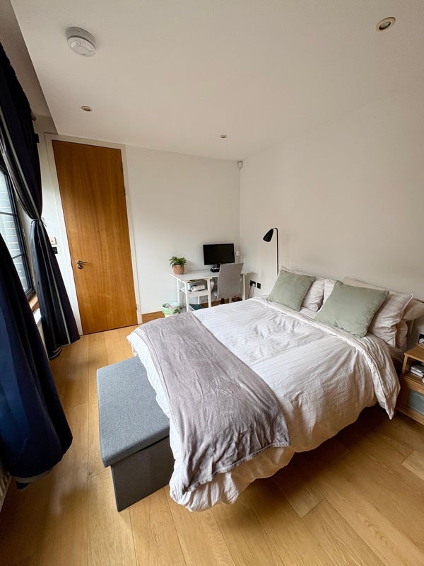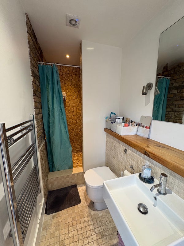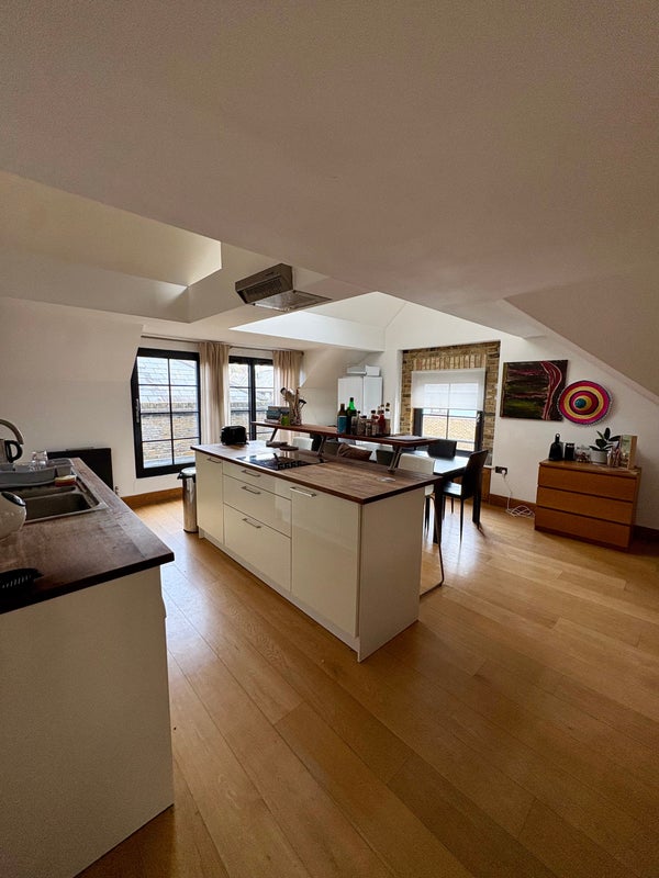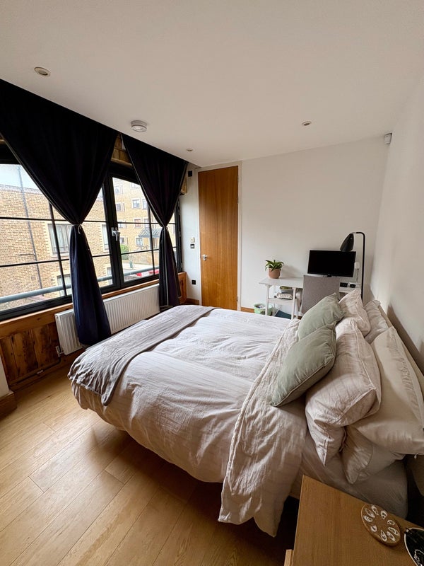 Lovely double room with en-suite in Wapping. The room has big windows, so the room is bright and airy. The flat is two floors, with a nice kitchen and living space upstairs. There’s plenty of storage and space for everyone.