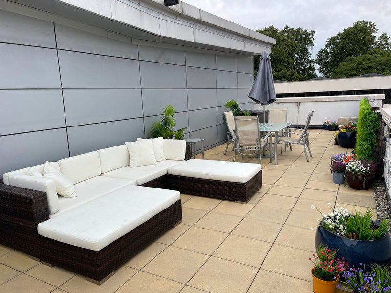 - Private wrap around roof garden has fantastic views towards Canary Wharf and City, garden furniture and sofa's great for sunbathing in privacy, outdoor speakers.