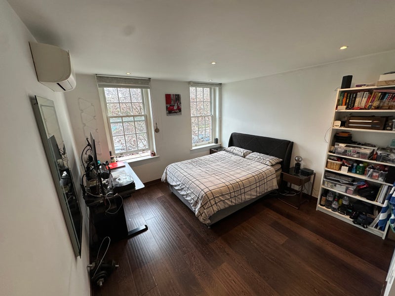 This is the larger of the two rooms in the flat, with great natural light and generous storage. You’ll also have your own bathroom for day-to-day use, with only the bath/shower shared.