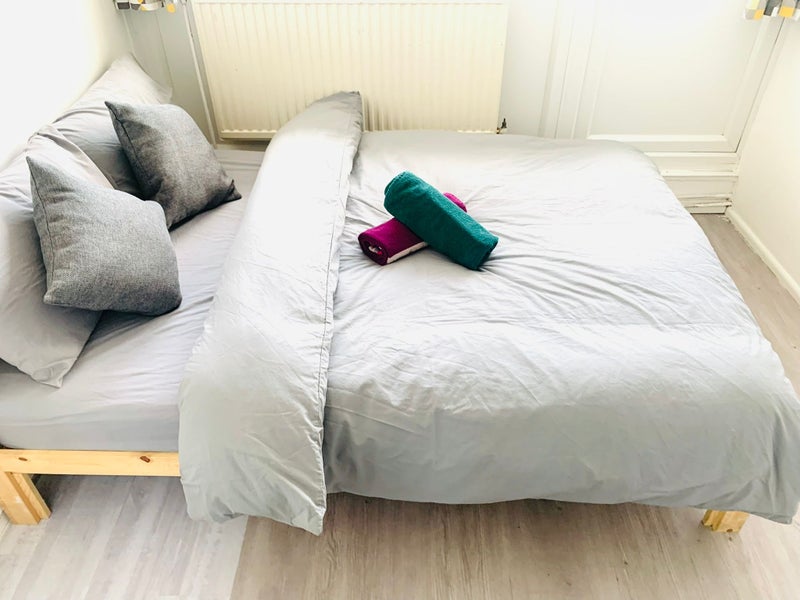 The property features five generously sized double bedrooms - all furnished, all benefiting from excellent natural light. There is a fully fitted kitchen with a comfortable dining area, one modern three-piece bathroom, and the added convenience of a separate WC.