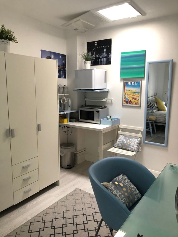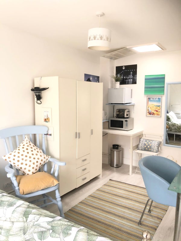 Centrally located clean Tidy Bright spacious double room with double bed, Self (contained). Kitchenette within the room