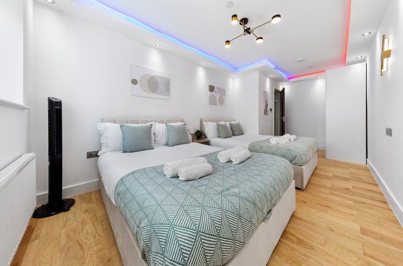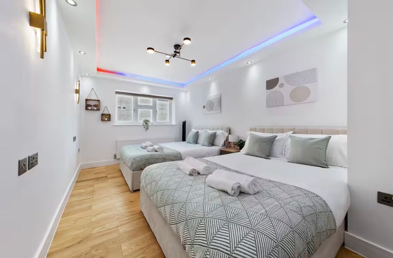 Bedroom 2 is spacious and family-friendly, with two double beds, offering plenty of room for everyone to unwind.
