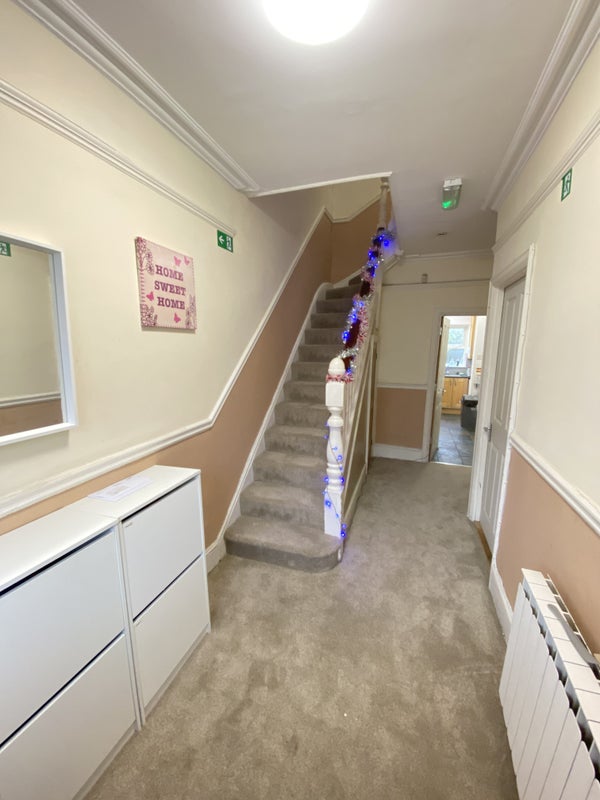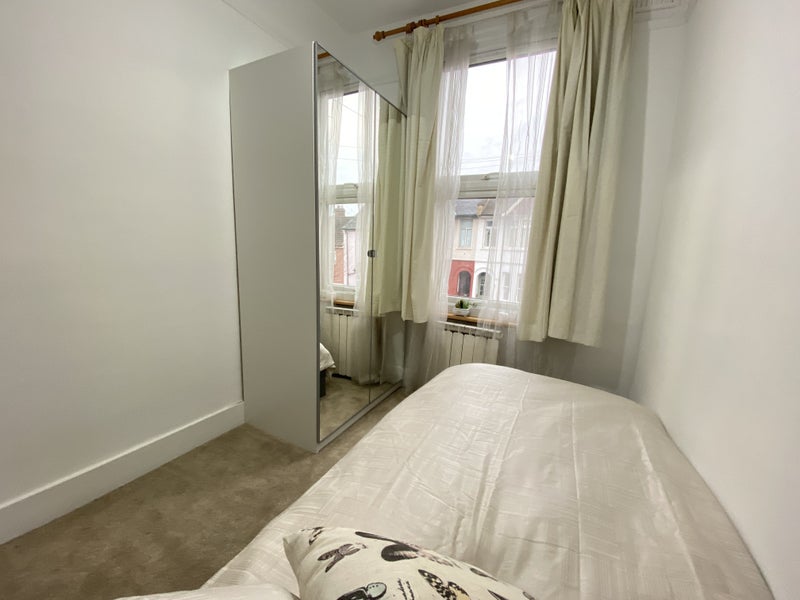 A bright, comfortable first-floor room overlooking the front of the house. Fully furnished with a bed, mattress, and wardrobe, plus space for a desk—perfect for working from home.