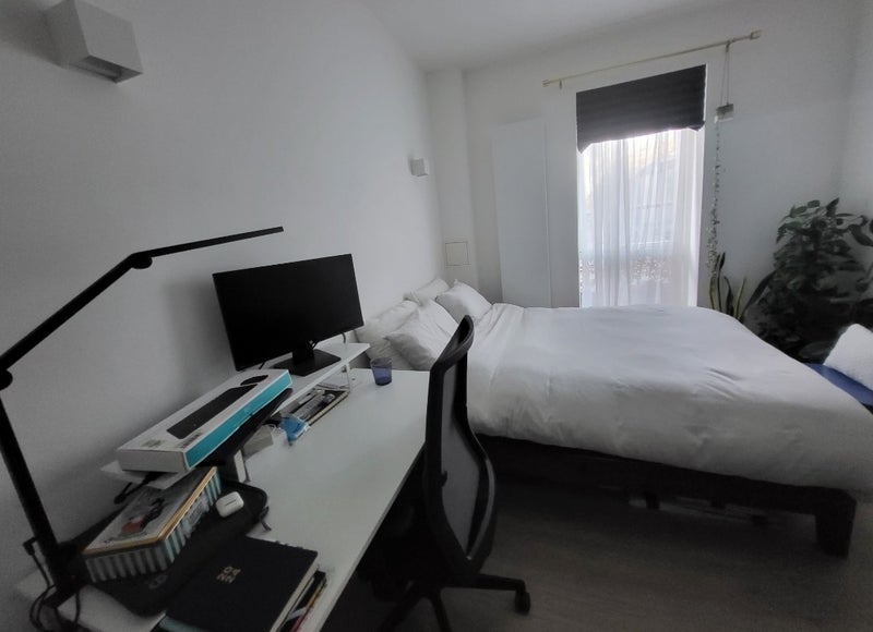 I'm renting out my flat for 3 to 6 months. There's a bedroom, bathroom, kitchen/ living space and loads of natural light with big windows facing on to a park. It's a cul de sac so not much traffic noise at all.