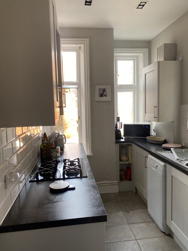 The flat: You’ll be sharing a huge two bedroom flat with one other person (F, 39, professional). The flat itself is lovely, with high ceilings, huge living area, shower room, galley kitchen and separate WC.