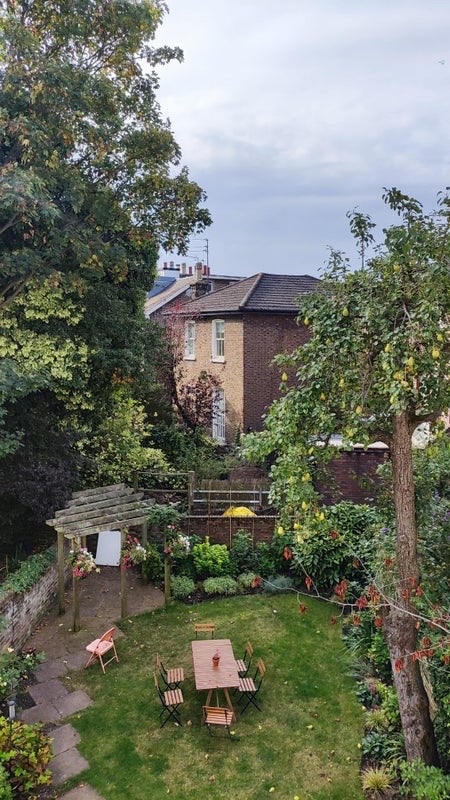 The house is three stories high with a gorgeous and lush back garden.