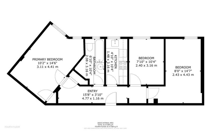 This apartment consists of 3 double bedrooms and comes with separate kitchen.