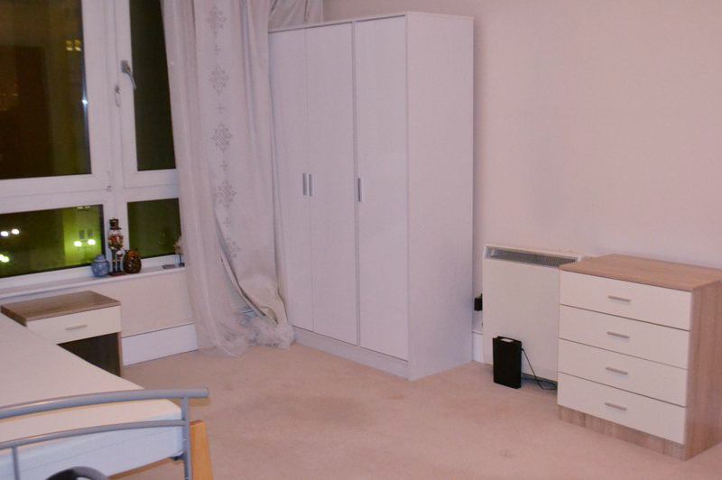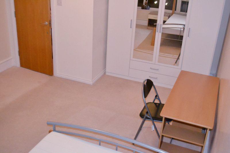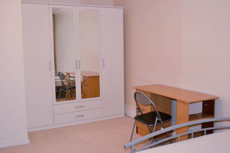 ** The room is spacious with amazing storage- 2 large wardrobes, double bed (with under-bed storage), 2 chest of drawers, desk (with drawers), chair and mirror.