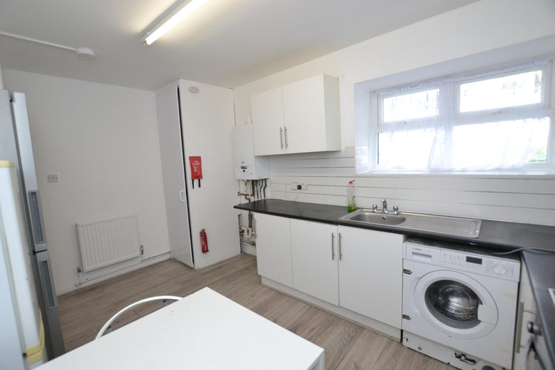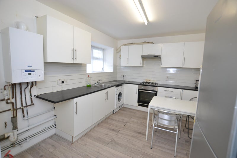 A spacious, fully fitted kitchen with dining area