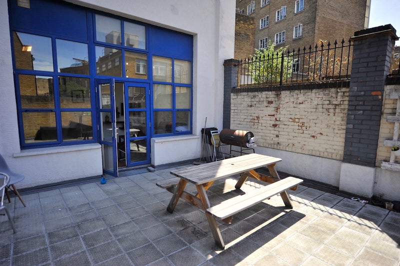 Stylish flat with exposed brickwork and piping throughout. The flat shares a large communal kitchen and living with a flat screen TV and sofa area. Very modern and stylish kitchen unit with all modern appliances (dishwasher, washing machine, x2 fridge freezers, microwave etc) and a large breakfast bar. Flat also enjoys its own large patio for bbq etc great during summer months.