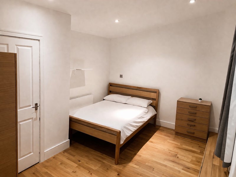 • Includes a double bed, chest of drawers, wardrobe, desk, and chair