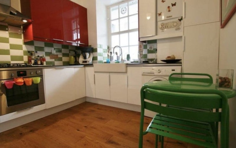 The flat is fully furnished and equipped, including fridge freezer, washing machine/dryer and dishwasher. It is finished to a good spec and designed to a colourful modern style. We have a wide selection of kitchen equipment and cooking utensils in the flat. There is a small dining table in the kitchen as well as a larger table in the living room. The living room has a TV and a sofa bed that can be used for guests.