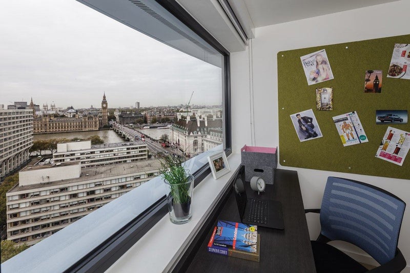 A luxurious studio flat on the 17th floor of Urbanest Student Accommodations. This spacious flat has amazing views of the Westminster Bridge, the London eye, and the houses of Parliament. This is the ideal location for students as it is only situated five minutes away from both Waterloo and Westminster tube stations.