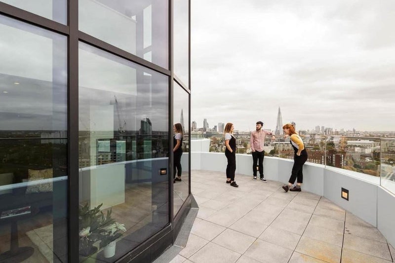 Tenants also have access to the 18th floor, which has a 360 view of London and plenty of space to play games such as ping pong (provided in the building) and socialise with friends. There is also a swimming pool, gym, and a sauna.