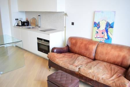 Stunning and bright studio flat in newly renovated BBC Television Centre in White City. The building has excellent transport links, just a minute away from both White City and Wood Lane underground stations. It is also just a few minutes from Westfield shopping mall, with all its associated amenities.