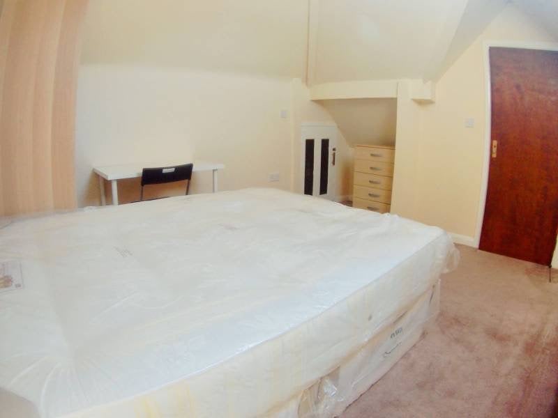 Fully furnished with a double bed, wardrobe, chest of drawers, desk, and chair