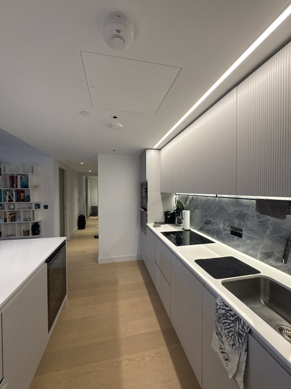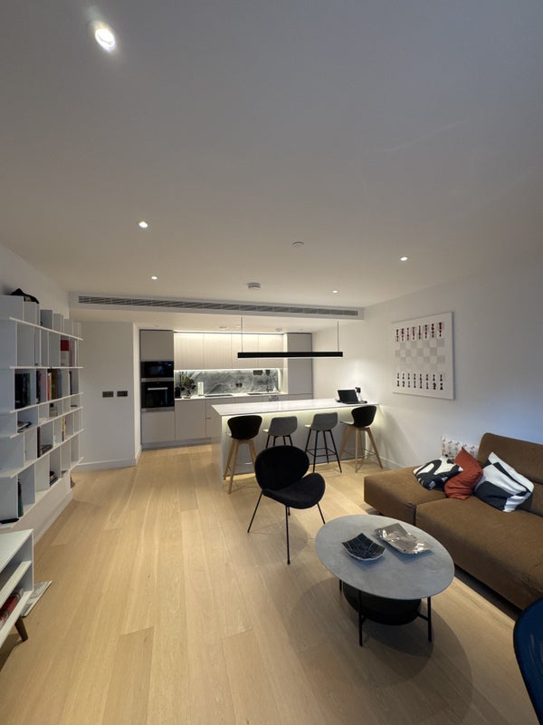Modern master bedroom with super king size bed and en-suite bathroom located in the luxury complex of White City Living with access to private pool, spa, sauna and gym. The building offers also other facilities like private cinema room and spacious meeting rooms.