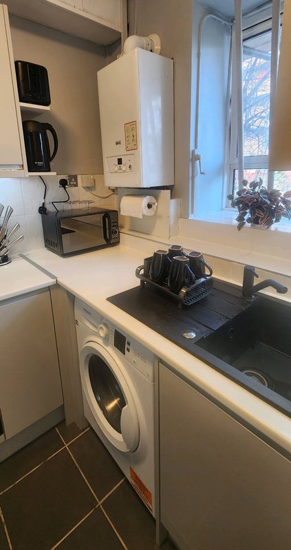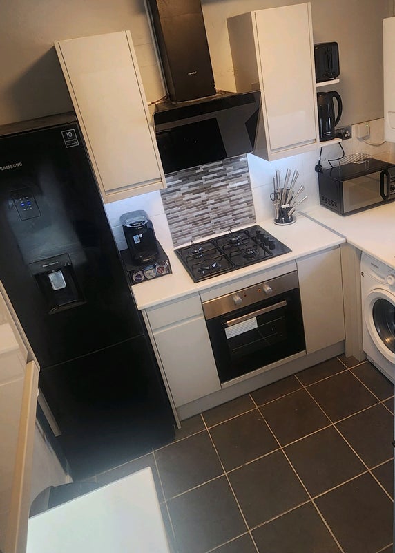 -Extra Large Fridge/Freezer, Washing Machine, Microwave, Coffee Machine, Toaster, Kettle, Plates, Mugs & Utensils.