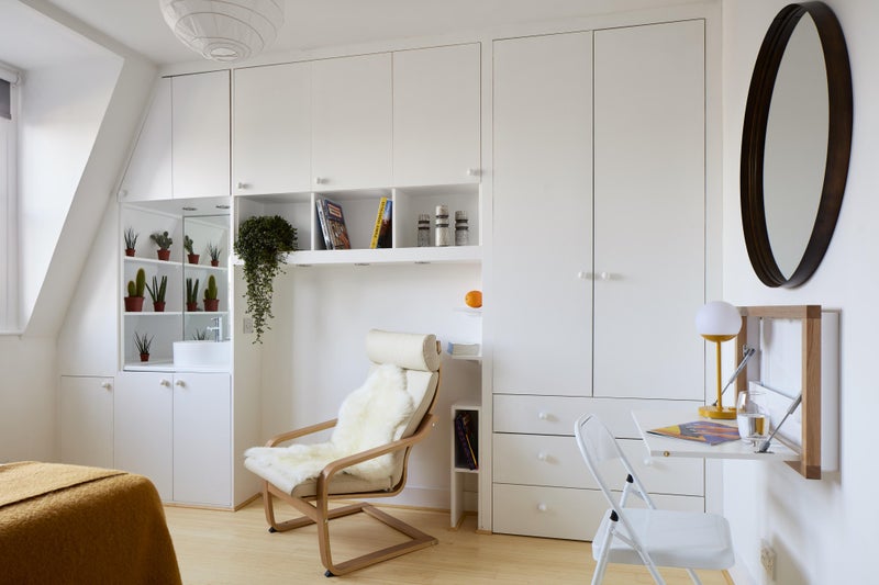 Built-in wardrobe, drawers, shelves and desk