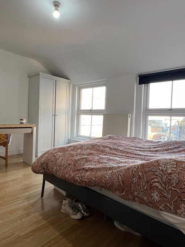 The windows are HUGE and you can see the sky right from your bed. Double bed, Large wardrobe + storage, Bright windows, Fully furnished. duvet+pillows also provided