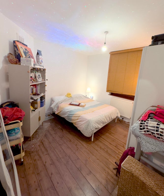 • Quite spacious, double bedroom size. Comes with a bed (everything else in the pictures belongs to my current flatmate and will be going with her) She might be happy to leave the wardrobe and sell it to the next tenant — open to discussion with her!