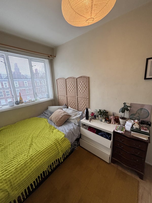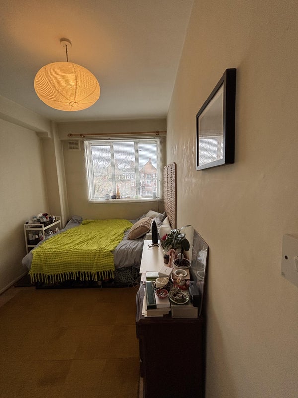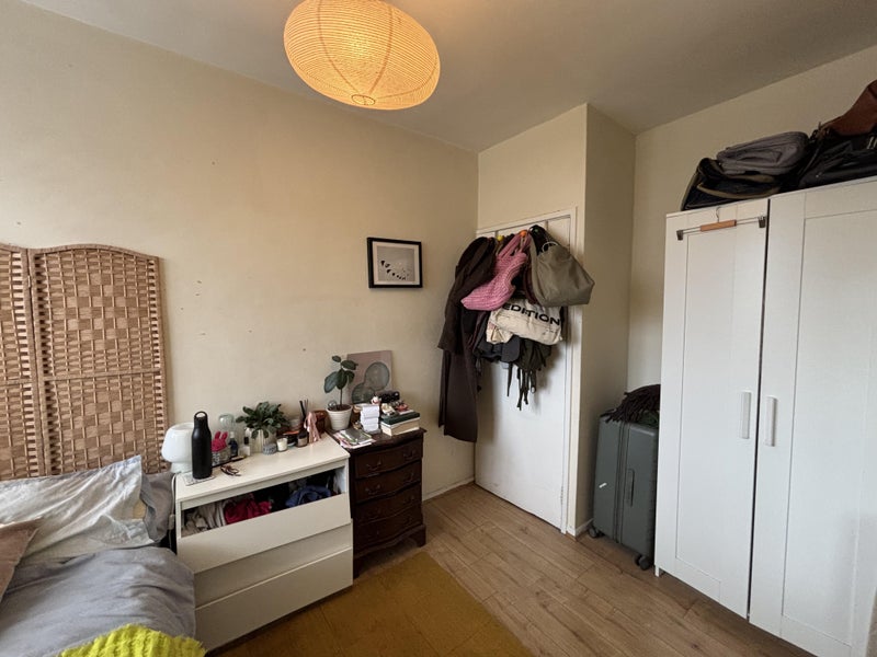 The room comes furnished with a double bed, chest of drawers (we've asked the landlord to replace them which should be done before you move in). A previous tenant could easily fit a desk in there, we both work from home and have no issue if you do.