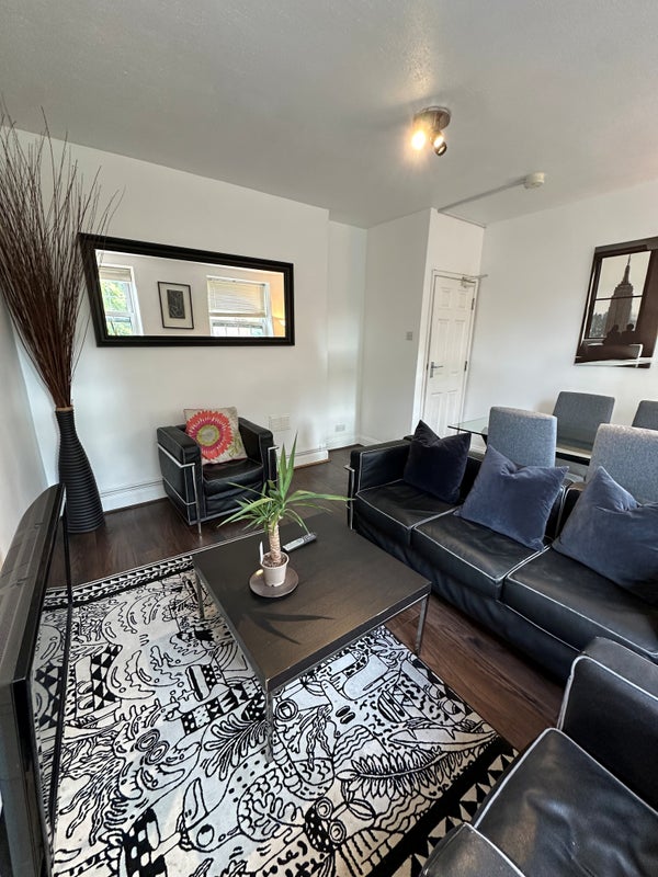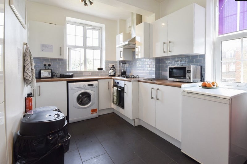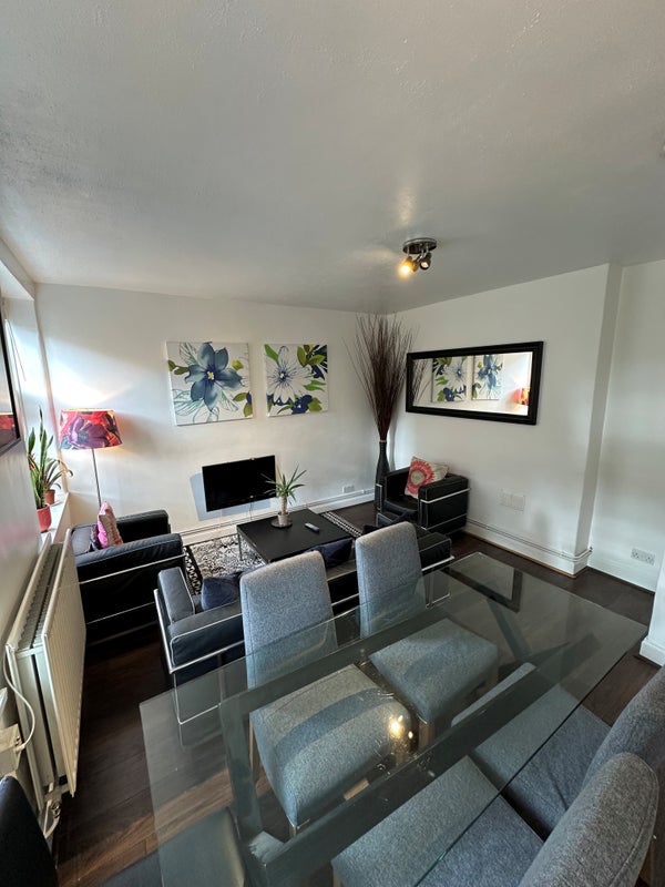 The flat also boasts two modern bathrooms - each with high powered showers. The kitchen is wonderfully bright and very spacious, equipped with all appliances and additional eating area. Everything is kept very clean and tidy as our cleaner visits once a week to clean all the communal areas. You would share the communal facilities with 4 other professionals.