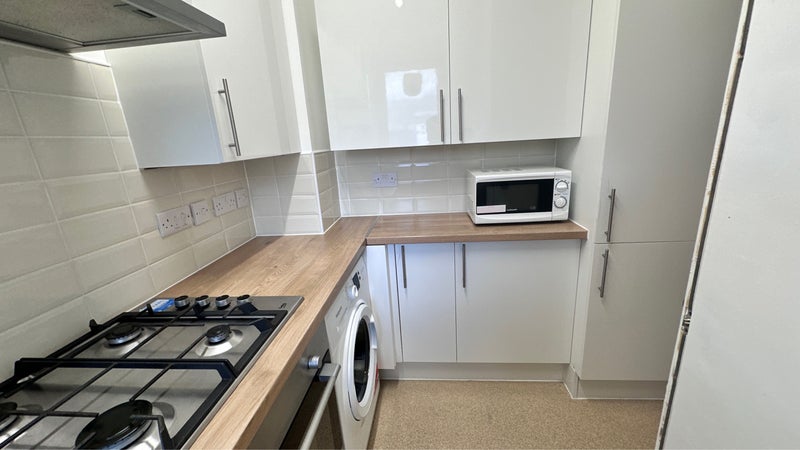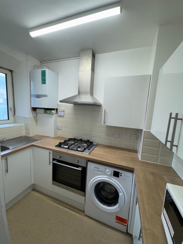 The Flat: Modern, refurbished 5-bedroom apartment with a fully equipped kitchen (washing machine, fridge/freezer, etc.) and a clean, spacious shared bathroom.